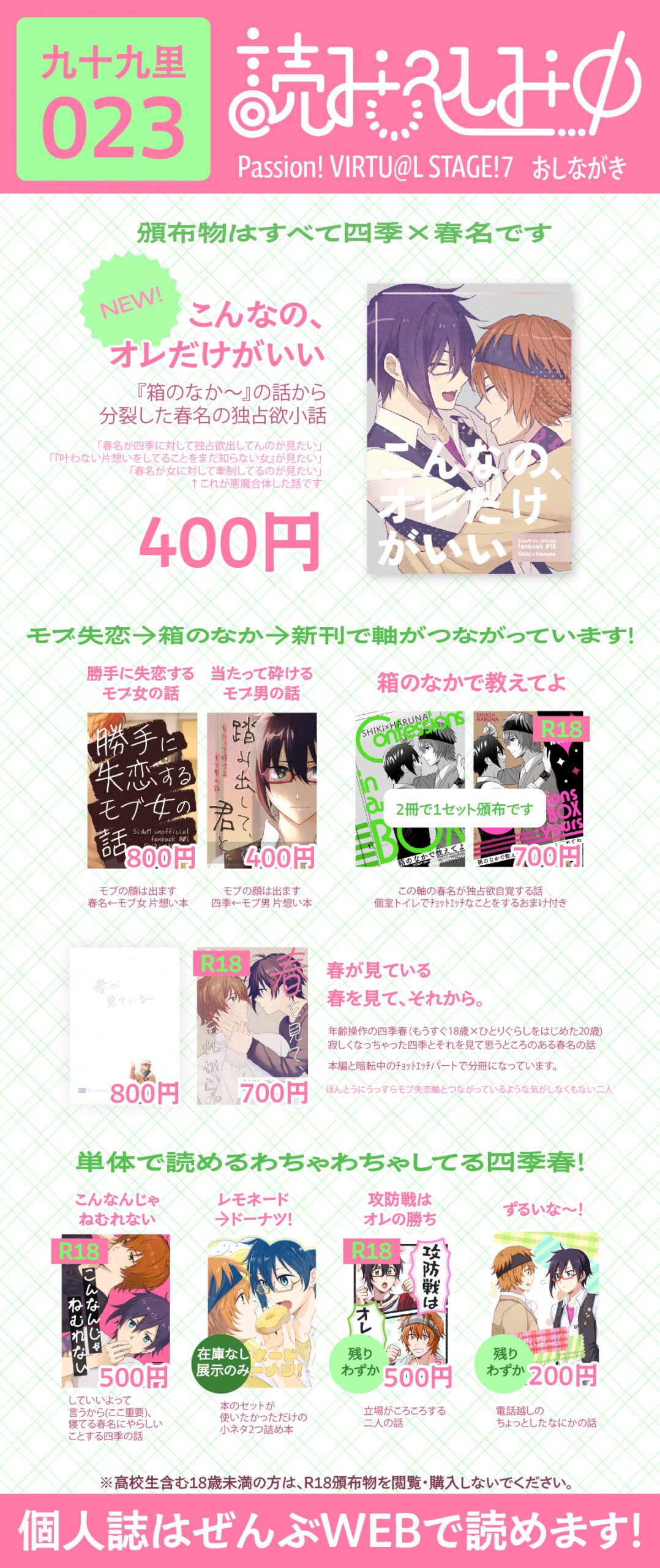 [モブ女・男失恋本]→[トイレ本]→[新刊]→(多分つながってる)→[春が見ている]→[春それから]